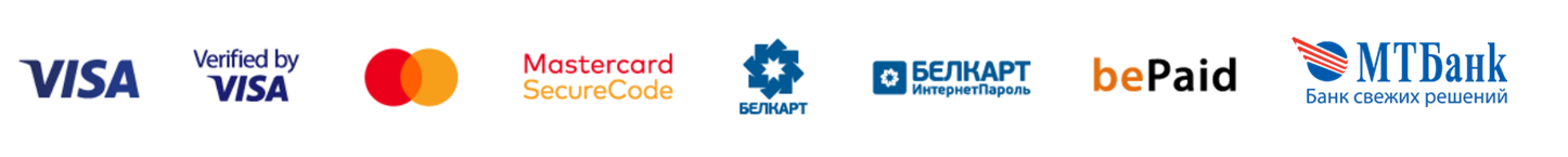 Онлайн платежи полностью безопасны и гарантированы платежной системой bePaid (сертифицирован по 1-му (высшему) уровню стандарта безопасности данных при работе с платежными картами (PCI DSS Level 1).
